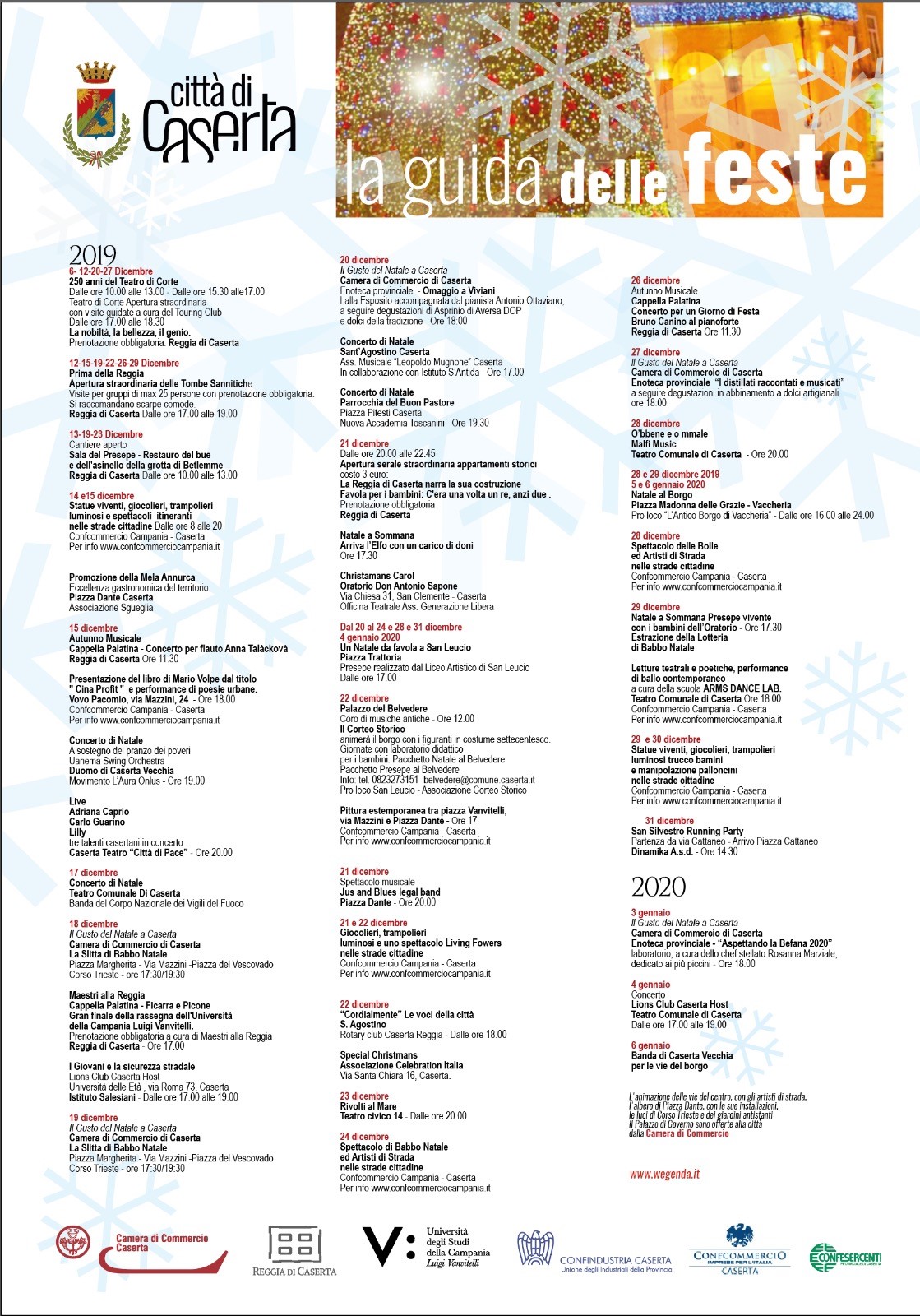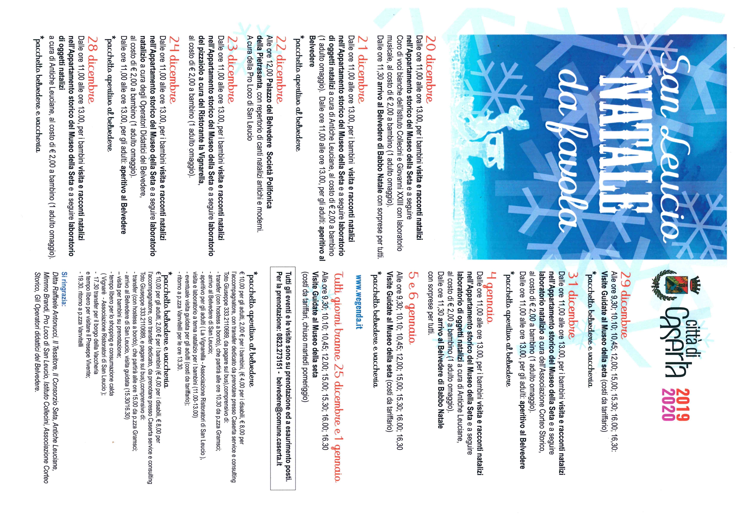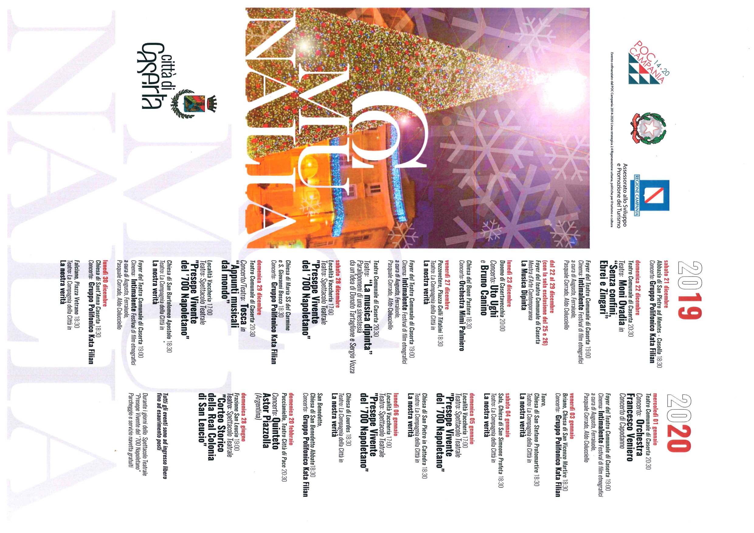 In allegato, il cartellone di Comunalia 2019/2020, la Guida delle Feste, il programma di San Leucio Natale da Favola.