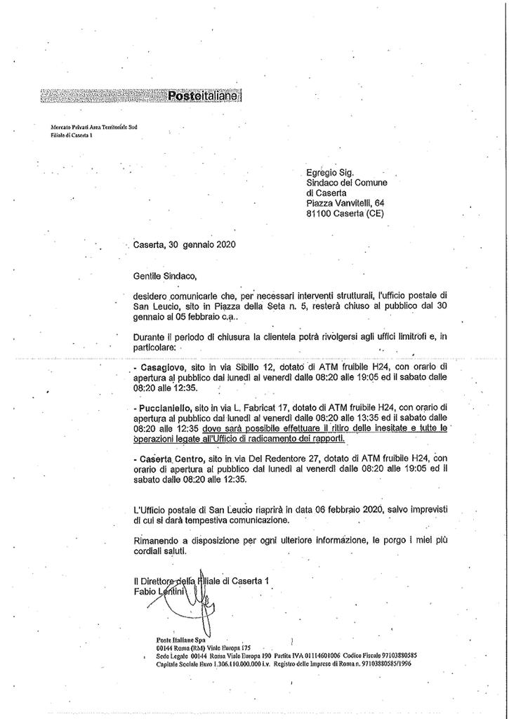 UFFICIO POSTALE DI SAN LEUCIO CHIUSO FINO AL 5 FEBBRAIO: ECCO L'ELENCO DEGLI UFFICI IN CUI RECARSI