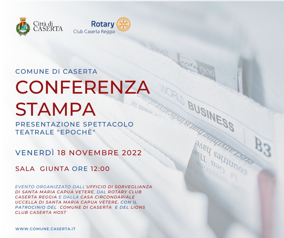 “Epochè” è un evento organizzato dall’Ufficio di Sorveglianza di Santa Maria Capua Vetere, dal Rotary Club Caserta Reggia e dalla Casa Circondariale Uccella di Santa Maria Capua Vetere, con il patrocinio del Comune di Caserta e del Lions Club Caserta Host.