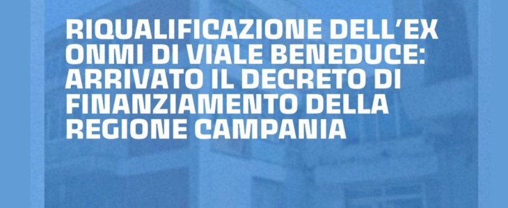 È arrivato il decreto della Regione Campania che finanzia gli interventi di riqualificazione dell’immobile “Ex Onmi” di viale Beneduce. Questo fondamentale passaggio fa seguito alla convenzione firmata pochi giorni fa tra il Comune di Caserta e la Regione. L’intervento, dell’importo di 700mila euro, verrà effettuato grazie ai fondi POC (Piano Operativo Complementare) 2014-2020, Asse Rigenerazione Urbana e Politiche Culturali, erogati dalla Regione Campania.