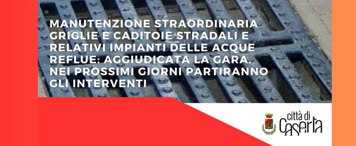 Il Comune di Caserta ha aggiudicato la gara per la manutenzione straordinaria delle griglie e delle caditoie stradali e dei relativi impianti delle acque reflue presenti su tutto il territorio cittadino. Nei prossimi giorni partiranno gli interventi.