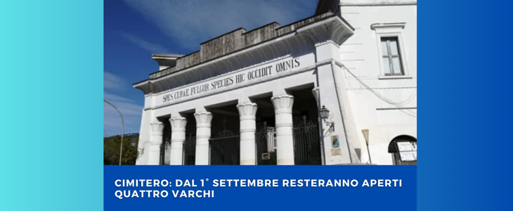 CIMITERO: DAL 1° SETTEMBRE RESTERANNO APERTI QUATTRO VARCHI