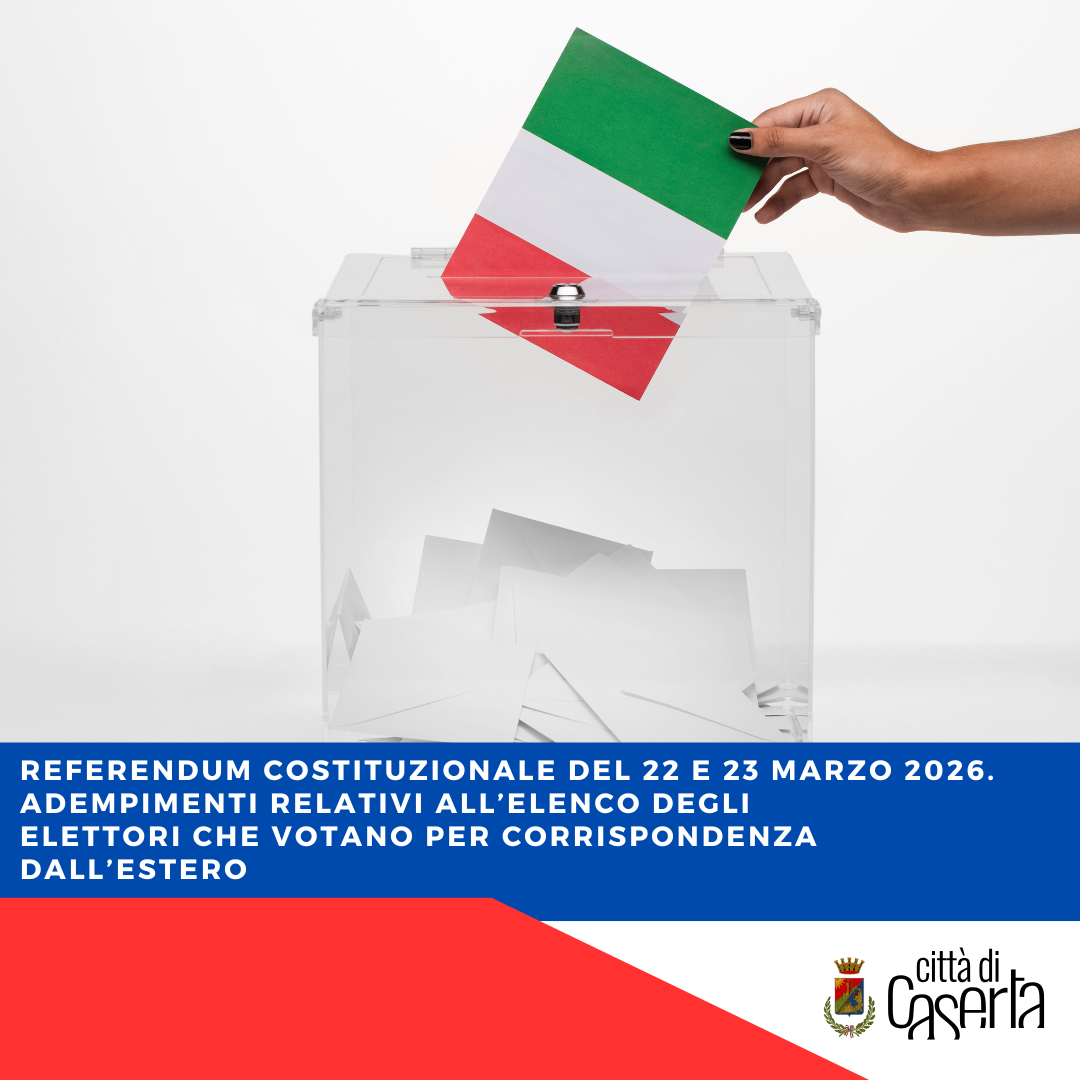 - Destinatari: elettori residenti a Caserta e temporaneamente all'estero per un periodo di almeno 3 mesi per motivi di lavoro, studio o cure mediche.