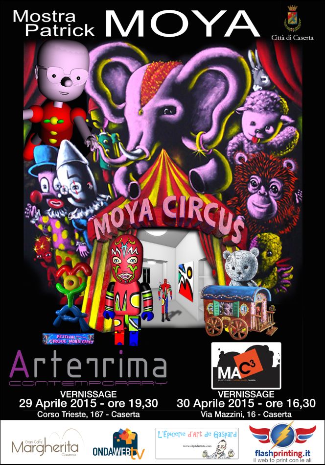 Giovedì 30 aprile alle 16,30 presso il Mac3, il Museo di Arte Contemporanea della Città di Caserta, si inaugura la mostra “Moya Circus, dalla Côte d’Azur a Caserta” dell’artista francese Patrick Moya, da anni autore delle opere presenti al Circo di Montecarlo L’esposizione sarà visitabile fino al 24 maggio.