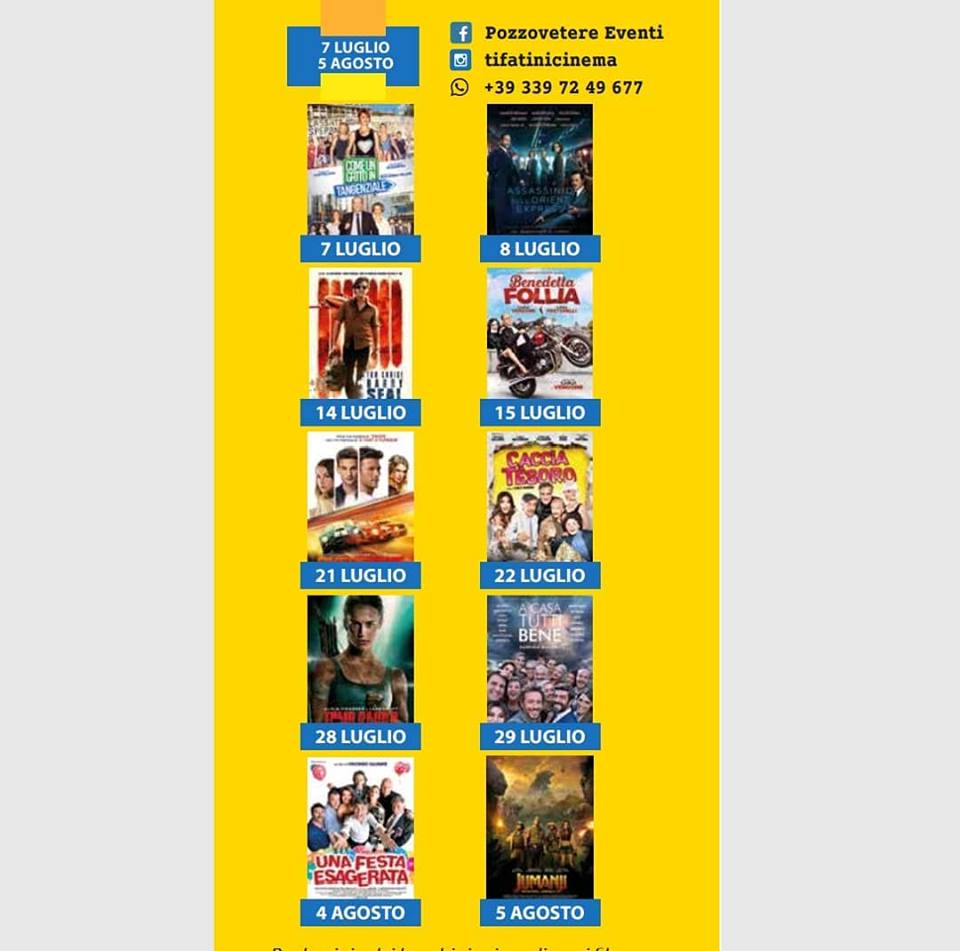 Torna anche quest’anno, dal 7 luglio al 5 agosto, l’ormai tradizionale appuntamento con Tifatini Cinema, la rassegna cinematografica all’aperto ad ingresso gratuito, ospitata nell’accogliente piazza di Colli Tifatini a Pozzovetere. Si parte il prossimo 7 luglio alle 20,30 con la commedia “Come un gatto in autostrada”, con Paola Cortellesi e Antonio Albanese, per proseguire domenica 8 luglio con il thriller “Assassinio sull’Orient Express”, protagonisti Johnny Depp e Penelope Cruz. La manifestazione, giunta alla sua ventunesima edizione, gode del patrocinio del Comune di Caserta, della Provincia, della Camera di Commercio e della Proloco Casertantica di Casertavecchia ed è stata inserita quest’anno nel cartellone unico degli Eventi d’Estate della Città di Caserta.
