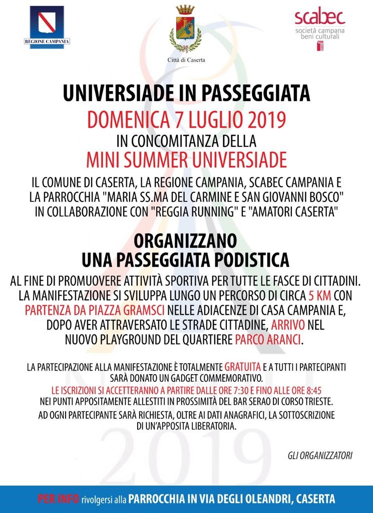 Mini Summer Universiade, da venerdì 5 luglio le iniziative a Caserta.