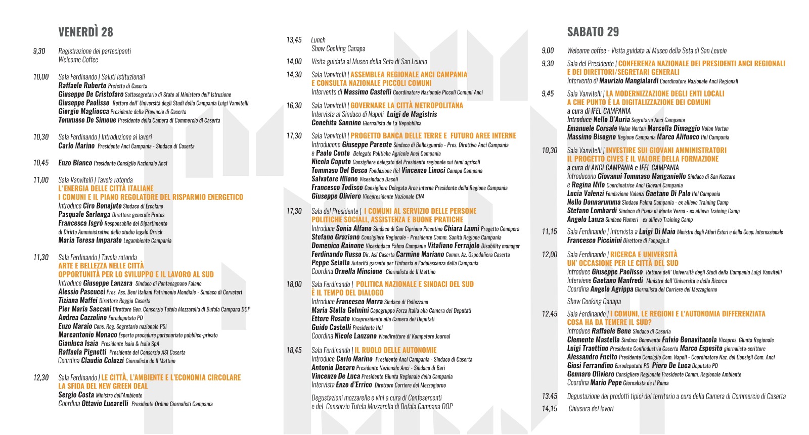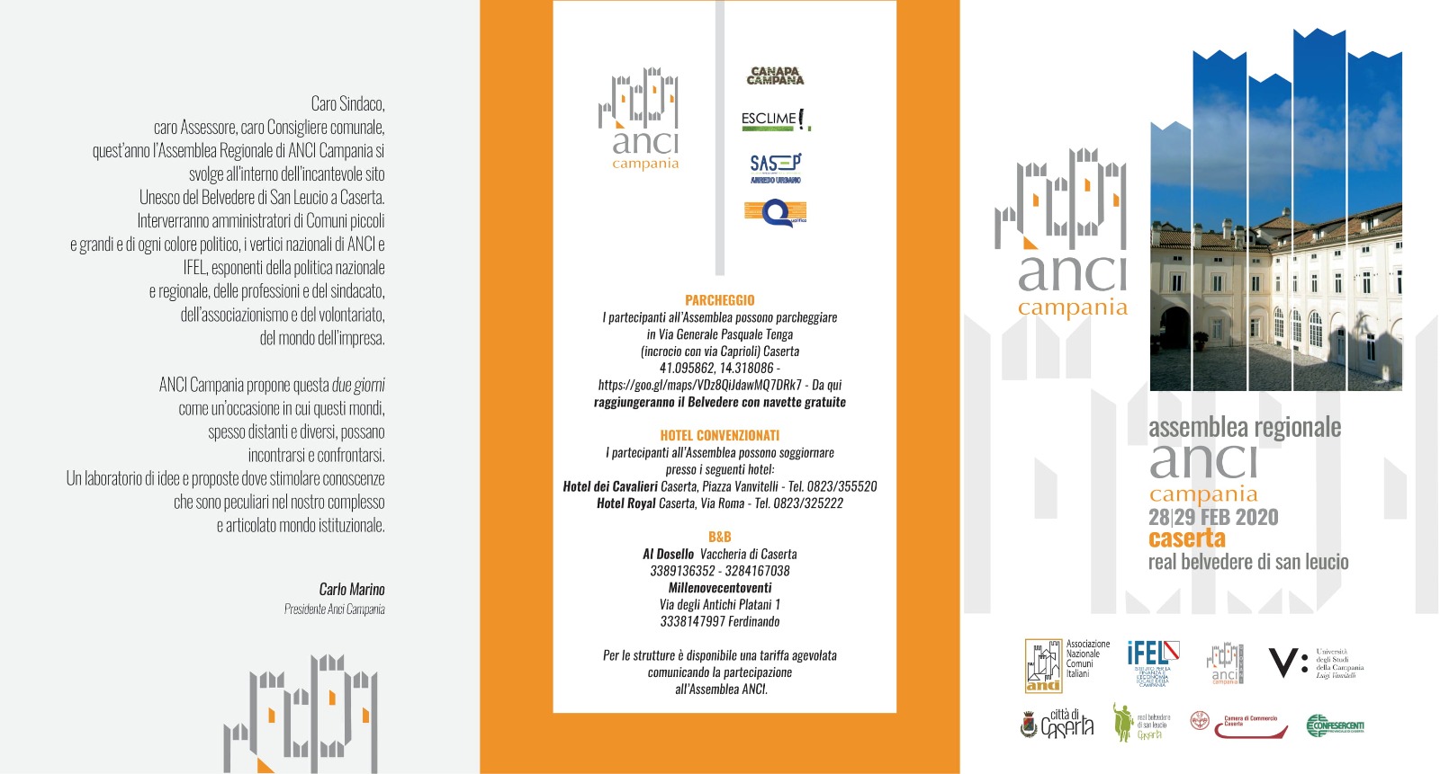 Venerdì 28 e sabato 29 febbraio, al Belvedere di San Leucio, l'Assemblea regionale dell'Associazione nazionale dei Comuni Italiani.
