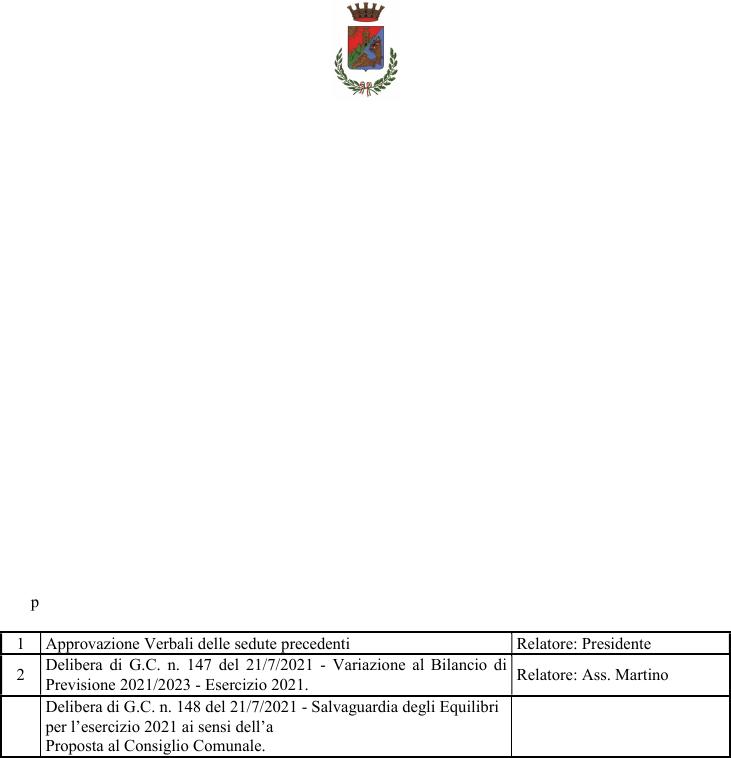 CONVOCAZIONE CONSIGLIO COMUNALE 4 E 5 AGOSTO