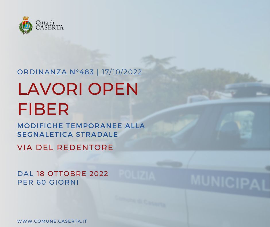 OGGETTO: VIA DEL REDENTORE - LAVORI OPEN FIBER - MODIFICHE TEMPORANEE DELLA SEGNALETICA STRADALE - DAL 18 OTTOBRE PER 60 GG.