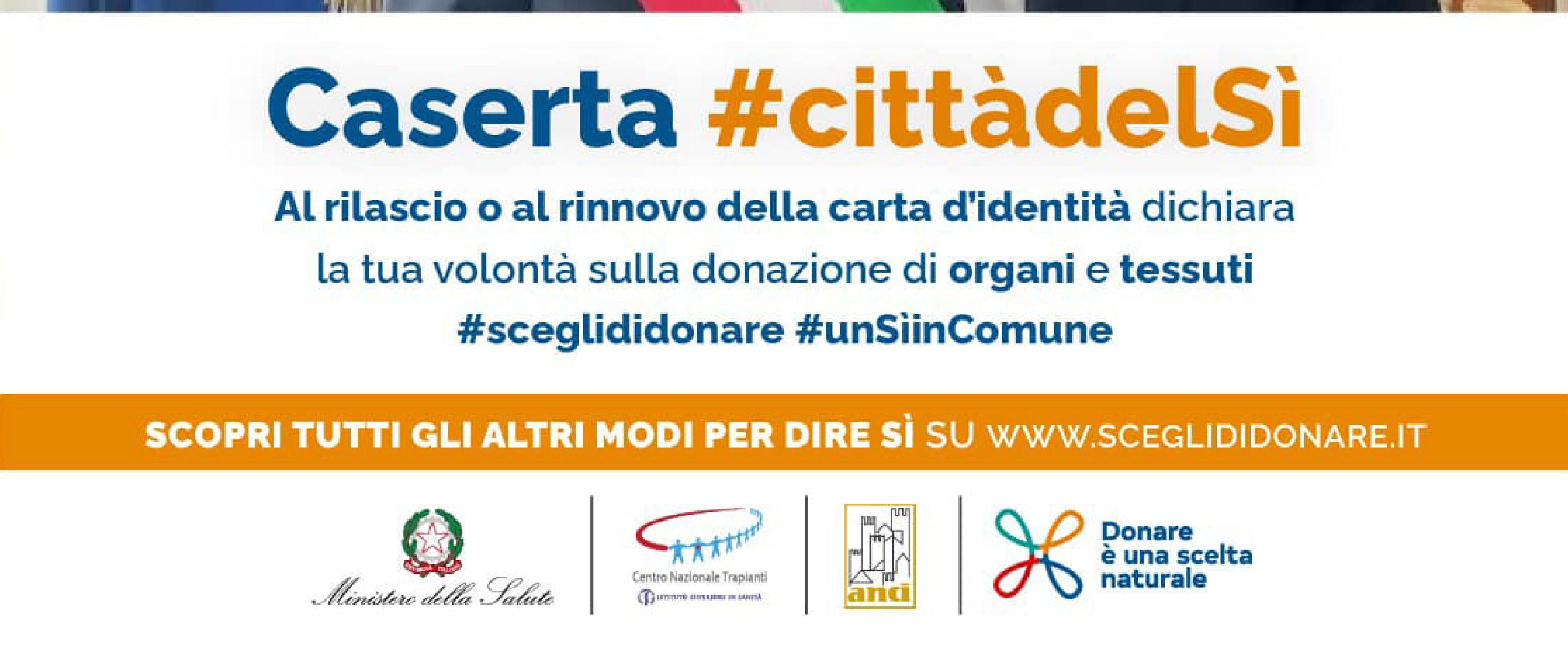 Il Comune di Caserta aderisce all'iniziativa di ANCI, del Ministero della Salute e del Centro Nazionale Trapianti in occasione della promozione della 26ª Giornata nazionale per la donazione di organi e tessuti."