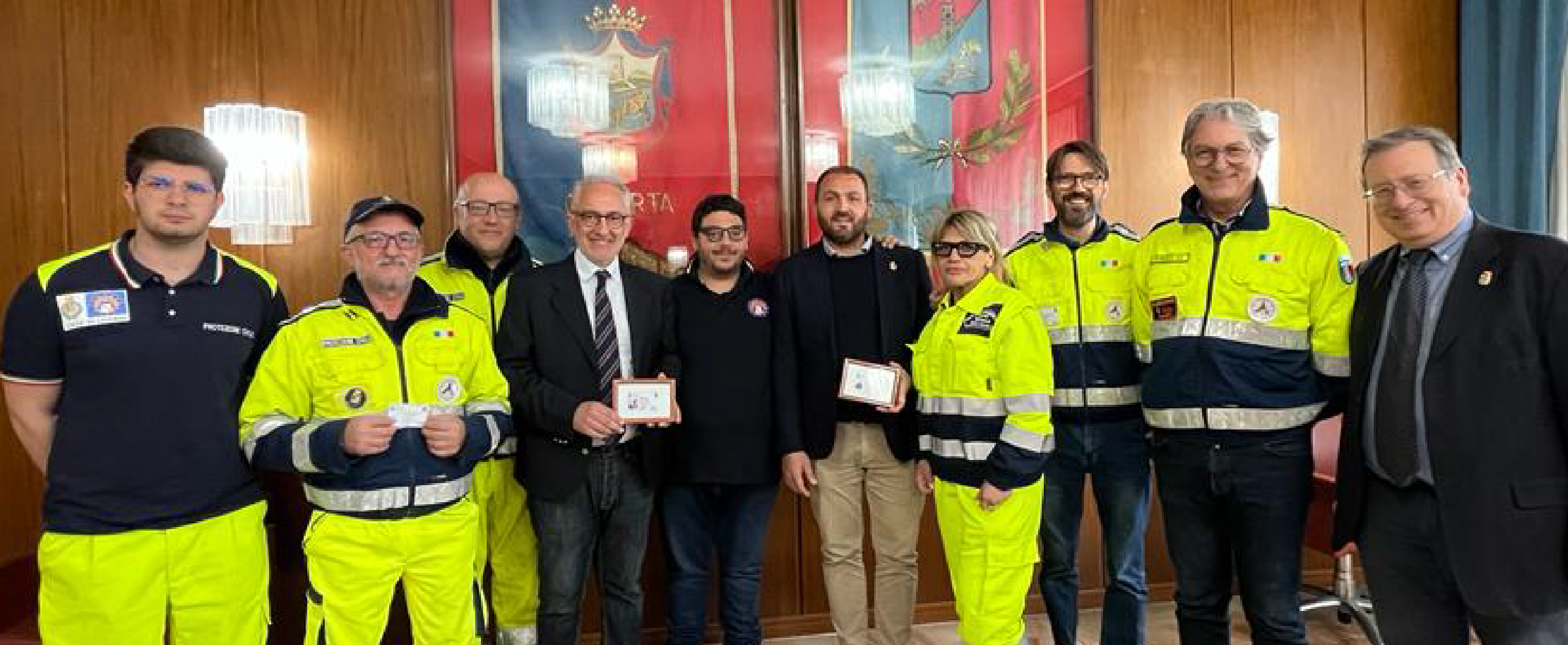 Il Sindaco di Caserta, Carlo Marino, e l’Assessore ai Lavori Pubblici e alla Protezione Civile, Massimiliano Marzo, hanno consegnato i tesserini ai volontari del Gruppo Comunale della Protezione Civile Cittą di Caserta, guidato da Francesco Brancaccio.