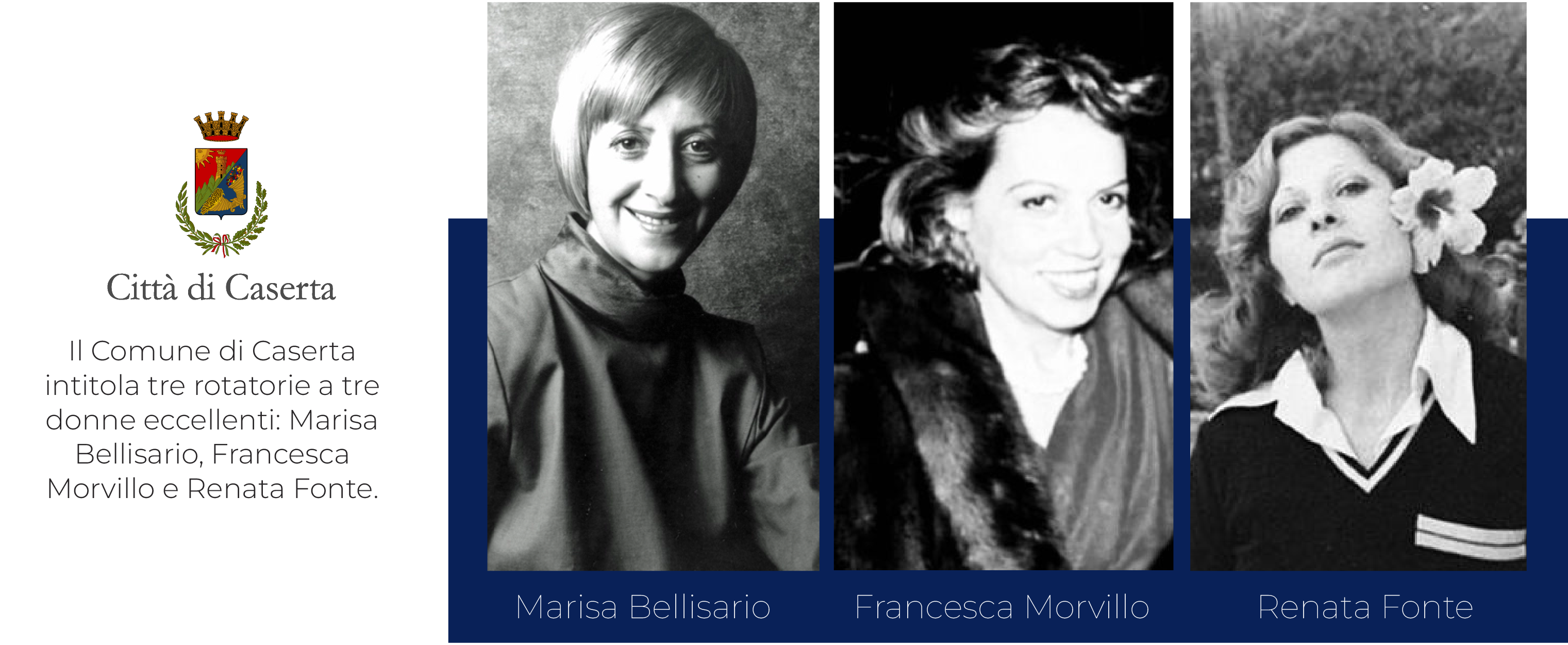 La Giunta Comunale ha approvato una delibera con la quale è stato deciso di intitolare tre rotatorie della Città di Caserta a tre donne straordinarie, meritevoli di essere ricordate e offerte come modello alle giovani generazioni. L’Amministrazione ha ricevuto la richiesta da parte dell’Associazione “Toponomastica femminile” di Caserta e della sua Presidente, Fosca Pizzaroni, di intitolare spazi e aree pubbliche a donne che si sono distinte per meriti particolari o che sono state vittime di discriminazioni nel campo professionale, oppure vittime per motivi politici o per delitti di mafia.