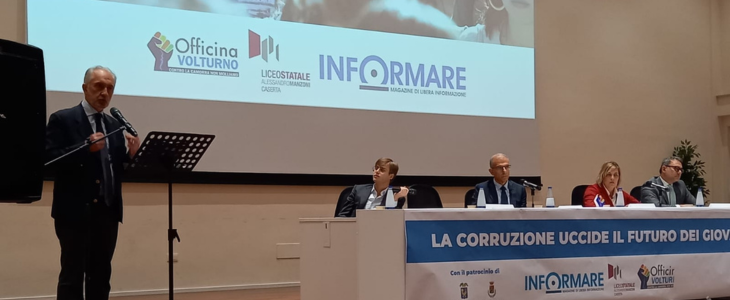 Questa mattina, il Sindaco Carlo Marino ha portato i saluti istituzionali nell'ambito dell'incontro "La corruzione uccide il futuro dei giovani", patrocinato dal Comune di Caserta e organizzato dall’Associazione Centro Studi Officina Volturno, dal Magazine "Informare" in collaborazione con il Liceo Statale Alessandro Manzoni di Caserta.