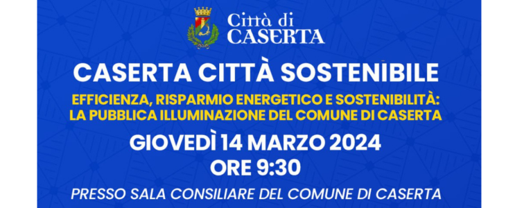 Giovedì 14 marzo, alle ore 9.30, presso la Sala Consiliare del Comune di Caserta, si terrà il convegno “Caserta città sostenibile. Efficienza, risparmio energetico e sostenibilità: la pubblica illuminazione del Comune di Caserta”.