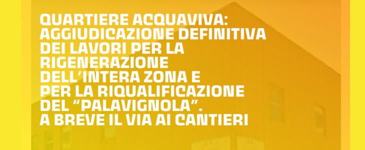 Partiranno a breve i cantieri per quel che concerne due interventi di grande importanza che riguardano il Quartiere Acquaviva, destinati a cambiare volto all’intera area. È avvenuta, infatti, l’aggiudicazione definitiva dei lavori, con l’espletamento di tutte le verifiche amministrative necessarie. In primo luogo, si partirà con il progetto (finanziato con fondi PNRR e in particolare PINQUA - Programma Innovativo Nazionale sulla Qualità dell’Abitare) che prevede interventi che riguarderanno la riqualificazione delle strade e dei marciapiedi, la creazione di un ampio percorso ciclopedonale, l’apposizione di nuovo arredo urbano, l’abbattimento delle barriere architettoniche, l’installazione di nuova segnaletica stradale e la riqualificazione delle villette. Tutte queste opere verranno messe in atto nelle principali strade del quartiere.