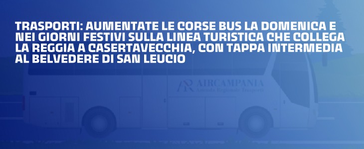 Dopo l’implementazione dei servizi da Caserta verso la Stazione di Afragola e l’aeroporto di Capodichino, da domani - mercoledì 1° maggio - saranno rafforzati i collegamenti dalla Reggia a Casertavecchia, con fermata programmata a San Leucio.