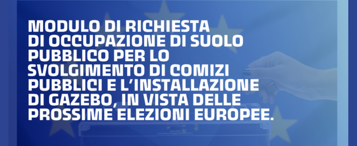 Sul sito web del Comune di Caserta sono disponibili l'avviso e il modulo di richiesta di occupazione di suolo pubblico per lo svolgimento di comizi pubblici e l’installazione di gazebo, in vista delle prossime Elezioni Europee.