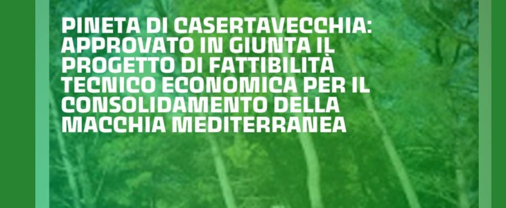 La Giunta Comunale ha approvato il progetto di fattibilità tecnico economica che prevede la valorizzazione e il consolidamento della macchia mediterranea all’interno della Pineta di Casertavecchia. Tale progetto, che vede un investimento di 330mila euro di risorse erogate dal Ministero della Transizione Ecologica, è in linea con le direttive europee a favore dell’adattamento ai cambiamenti climatici e prevede tre azioni principali: la conservazione del piano arboreo esistente (114 piante di Pinus halepensis e 6 Quercus ilex da salvaguardare); la rimozione delle 42 ceppaie arboree morte, accumulatesi durante gli anni; la messa a dimora di nuove essenze arboree (67 piante di Quercus ilex).