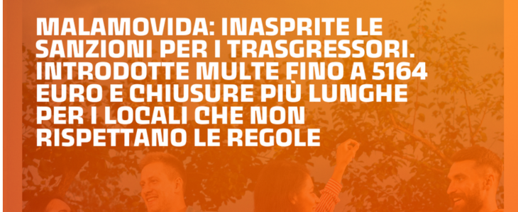 Nel dettaglio, le variazioni principali riguarderanno le sanzioni e le chiusure delle attività che violeranno le prescrizioni contenute nel Regolamento. Per quanto concerne le sanzioni, si potrà arrivare a un massimo di 5164 euro, mentre una variazione molto restrittiva riguarda anche le chiusure: alla prima infrazione, infatti, scatterà uno stop di 5 giorni alle attività. Per ogni reiterazione, ci sarà un’ulteriore chiusura di 15 giorni.