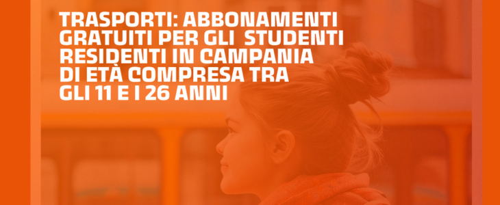 Per il nuovo anno scolastico è possibile ottenere l’abbonamento gratuito ai mezzi di trasporto pubblici per gli studenti residenti in Campania di età compresa tra gli 11 ed i 26 anni. Gli abbonamenti avranno validità fino al 31/07/2025 per la tratta dal Comune di residenza a quello in cui ha sede l’Istituto/Università e solo nei giorni feriali; potranno essere aziendali o integrati a seconda che lo studente, per lo spostamento casa-studio, utilizzi i mezzi di una sola Azienda o di più Aziende. Da venerdì 9 agosto l’apertura della piattaforma per le candidature, sul sito web del Consorzio UnicoCampania.