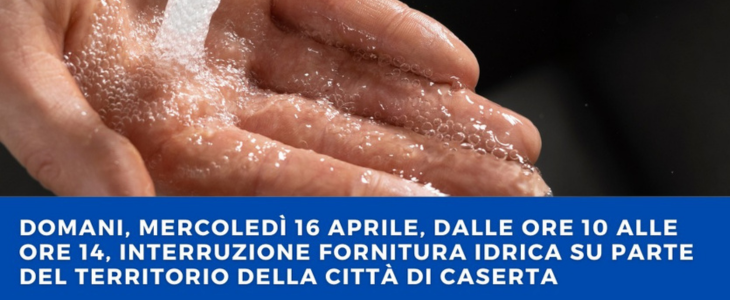 Si comunica che, a causa di lavori sulla conduttura regionale di Via Galatina a San Clemente, mercoledì 16 aprile 2025 dalle ore 10:00 alle ore 14:00, salvo imprevisti, si verificheranno mancanze d'acqua in diverse aree della città.