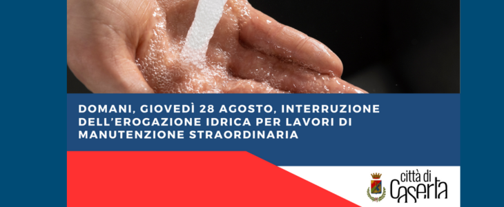 Domani, giovedì 28 agosto, interruzione dell'erogazione idrica per lavori di manutenzione straordinaria